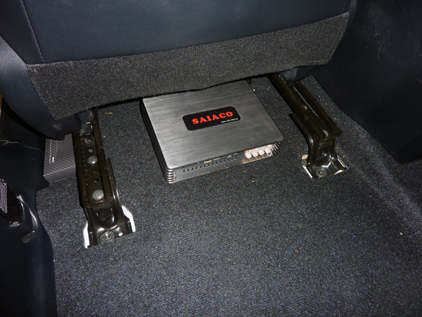 DSPプロセッサーは「SAIACO」のHSA-800PRO10を助手席シート下に取り付け。