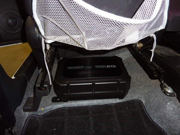 今回はミツビシ「トッポ」にカロッツェリアのサブウーファー「TS-WX400DA」を助手席シート下に取り付け。