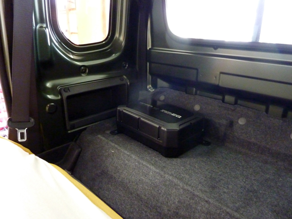 今回は(岐阜)揖斐郡からお越しのスズキ「キャリー」(軽トラ)にサブウーファーとフロントスピーカーを取り付け。